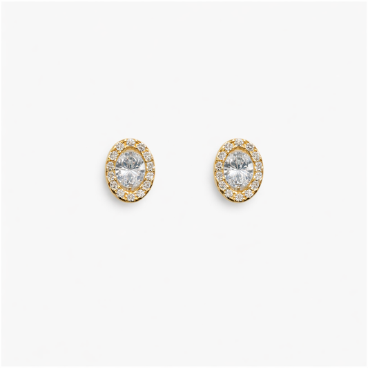 Oval Zircon Border Stud Earrings