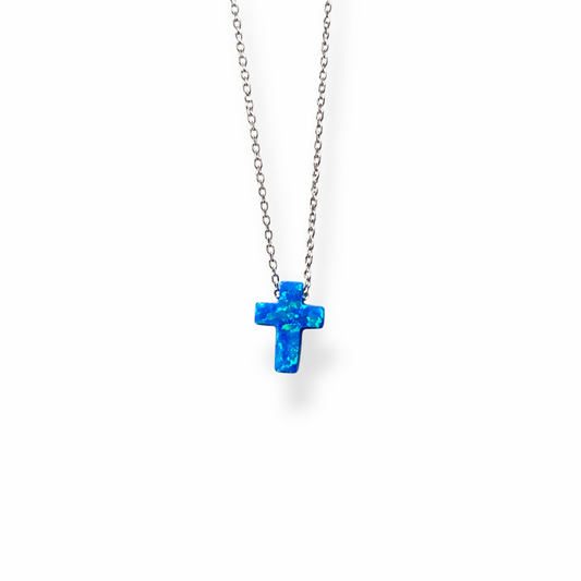 Blue Opal Cross Necklace