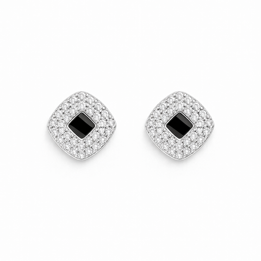 Square Zircon Black Stone Earrings
