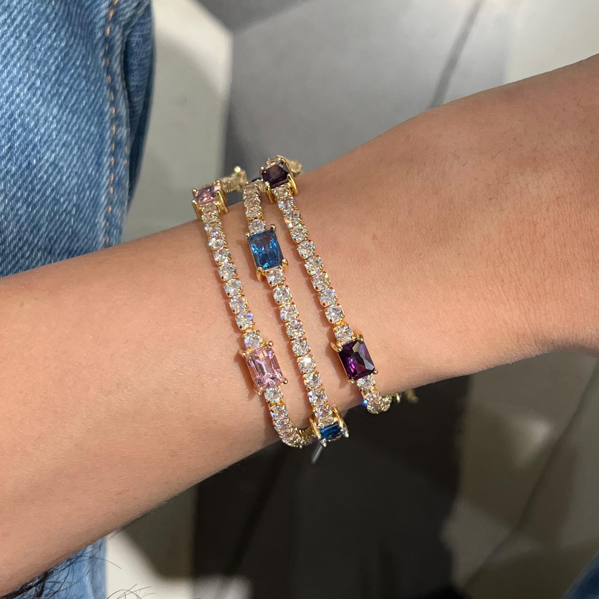 Colorful Rectangle Swarovski Stone Tennis Bracelet