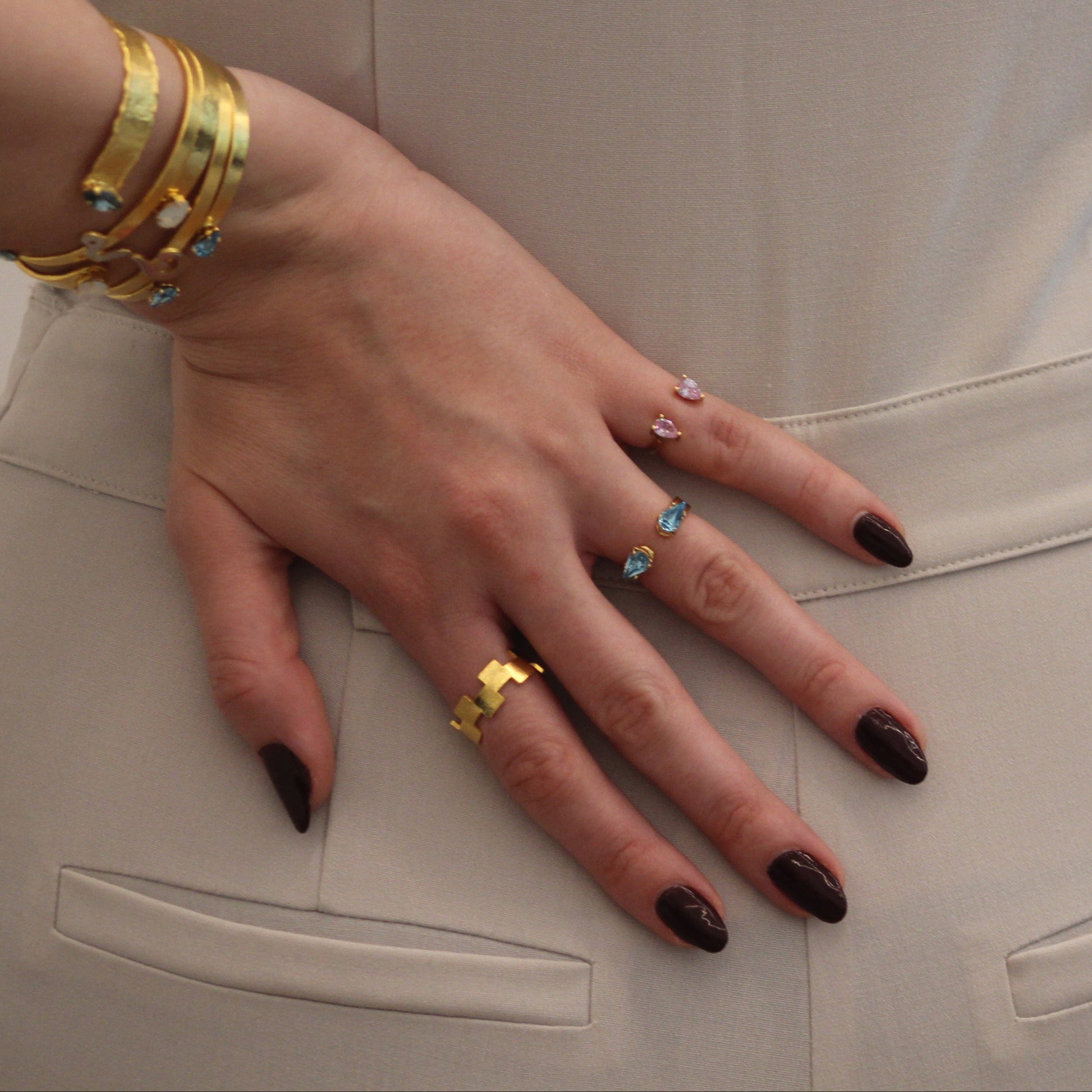 Pear Stone Pinky Ring